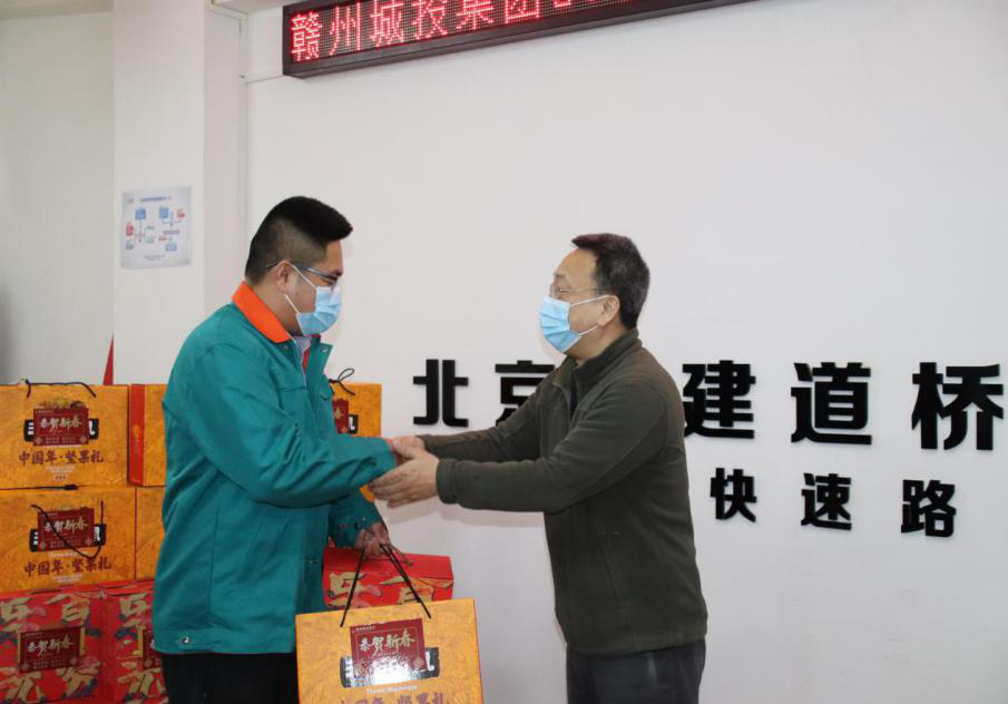 2月9日,贛州城投集團(tuán)開展2021年春節(jié)慰問市域外留贛州過年人員活動(dòng),為留在贛州過年的市域外集團(tuán)員工及項(xiàng)目工人送上年貨禮包,讓他們就地過好溫馨春節(jié)。