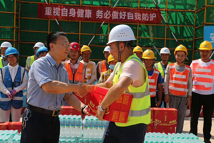 8月26日至27日,集團(tuán)監(jiān)事會(huì)主席陳孝榮、黨委副書(shū)記黃家偉、財(cái)務(wù)總監(jiān)梁曉斌等帶隊(duì),分成5個(gè)慰問(wèn)組,分別來(lái)到蟠龍大橋、鳳崗嘉苑住宅小區(qū)、人才小鎮(zhèn)住宅小區(qū)一期等工程項(xiàng)目工地走訪慰問(wèn)高溫作業(yè)一線職工,為他們發(fā)放西瓜、涼茶、礦泉水等解暑物品,送來(lái)一絲清涼;關(guān)心詢問(wèn)他們的身體情況和工作困難,囑咐他們?cè)诟邷毓ぷ鲿r(shí)勞逸結(jié)合、自我調(diào)節(jié),建立、落實(shí)錯(cuò)時(shí)工作制,做到合理安排工作時(shí)間,盡可能避開(kāi)高溫時(shí)段,防止高溫中暑,確保施工安全和身體健康。工程管理公司、生態(tài)投資公司有關(guān)負(fù)責(zé)人以及集團(tuán)工會(huì)、文化宣傳部相關(guān)人員參加慰問(wèn)。