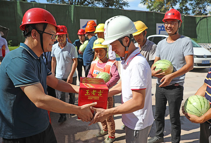“感謝集團(tuán)工會(huì)的關(guān)懷,這幾天天氣都是30多度,今天收到一份這樣舒爽的禮物,我們特別開(kāi)心,我們會(huì)繼續(xù)堅(jiān)守好自身的工作崗位,努力把工程項(xiàng)目保質(zhì)量保安全建設(shè)好,如期完工交付?!爆F(xiàn)場(chǎng)接受慰問(wèn)的一線職工代表接過(guò)防暑慰問(wèn)品后,用簡(jiǎn)單、樸實(shí)話語(yǔ)表達(dá)了對(duì)集團(tuán)慰問(wèn)活動(dòng)的點(diǎn)贊心情。