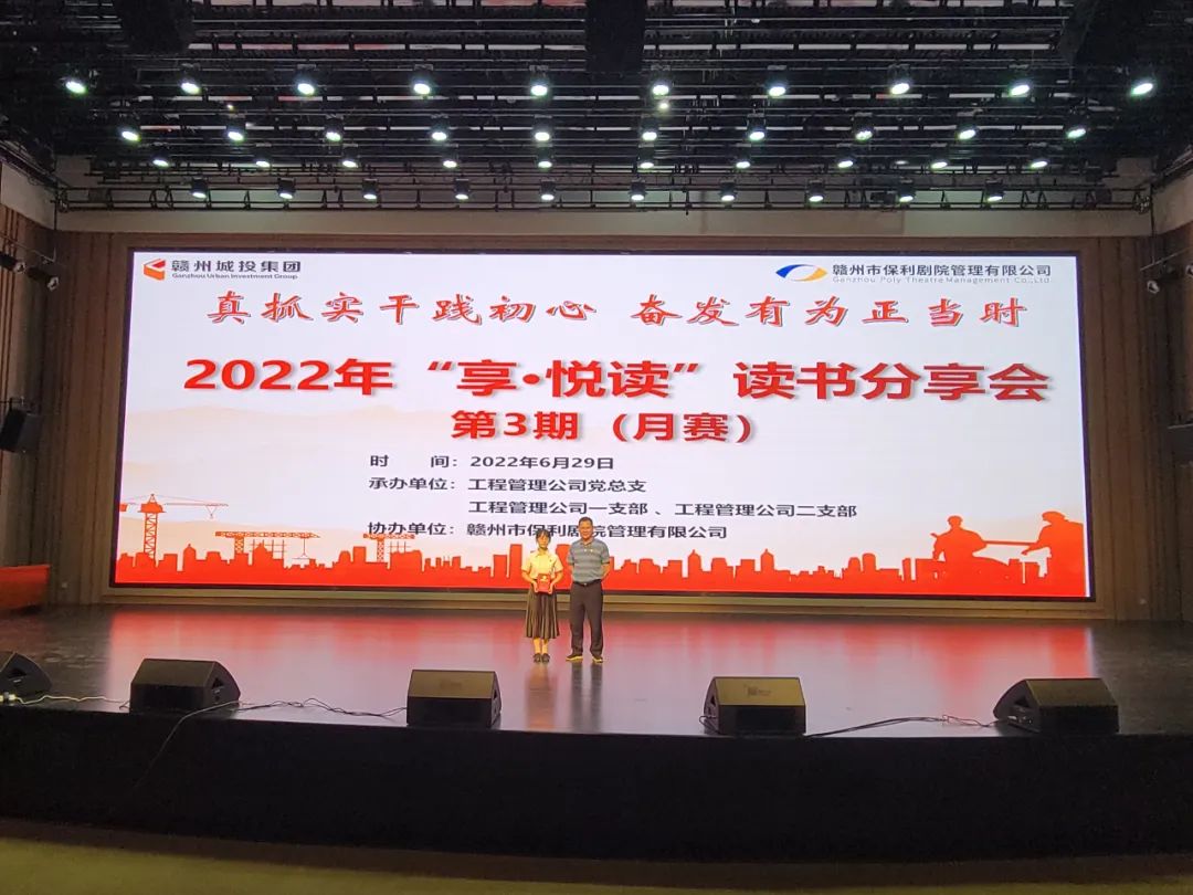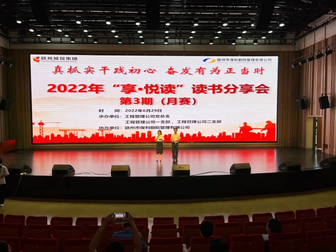 6月29日,贛州城投集團黨委在贛州大劇院音樂廳舉辦第3期“享·悅讀”讀書分享會。本次讀書分享會由工程管理工程黨總支及所屬一、二支部承辦,贛州市保利劇院管理有限公司協(xié)辦。市國資委黨委委員、副主任王全生,贛州城投集團黨委委員、總工程師王遠平出席,工程管理公司所屬支部黨員、入黨積極分子等相關(guān)人員參加。
