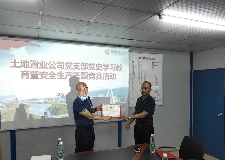 為進(jìn)一步鞏固深化黨史學(xué)習(xí)教育成果,促進(jìn)建黨100周年期間的安全生產(chǎn)工作,日前,土地置業(yè)公司黨支部在星洲灣·九境項(xiàng)目部會(huì)議室舉辦建黨100周年黨史學(xué)習(xí)教育暨安全生產(chǎn)答題競(jìng)賽,土地置業(yè)公司全體員工,星州潤達(dá)集團(tuán)、贛州建工集團(tuán)、星洲地產(chǎn)部分代表等20余人參加。
