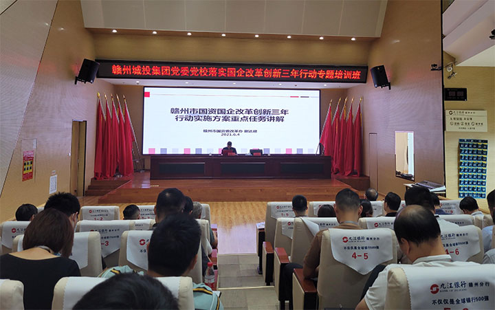 6月23日下午,贛州城投集團黨委黨校舉辦落實國企改革創(chuàng)新三年行動專題培訓班,集團黨委委員、總工程師王遠平,黨委委員、紀委書記曾富有出席,市國資委宣教科科長謝達迎應邀作專題輔導,集團全體中層管理人員,相關部門、子公司人員共計70余人參加培訓。
