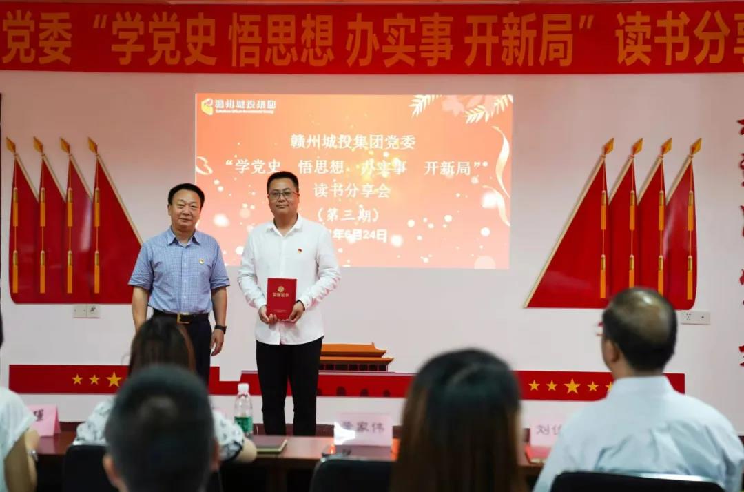 蟬鳴荷香六月天,黨史學習正當時。為推動黨史學習教育走深走實, 日前,贛州城投集團黨委舉辦第三期“學黨史 悟思想 辦實事 開新局”讀書分享會。集團黨委副書記黃家偉出席并講話,集團黨群工作部、辦公室代表,市建筑設(shè)計院、天成設(shè)計院黨支部全體黨員參加活動。