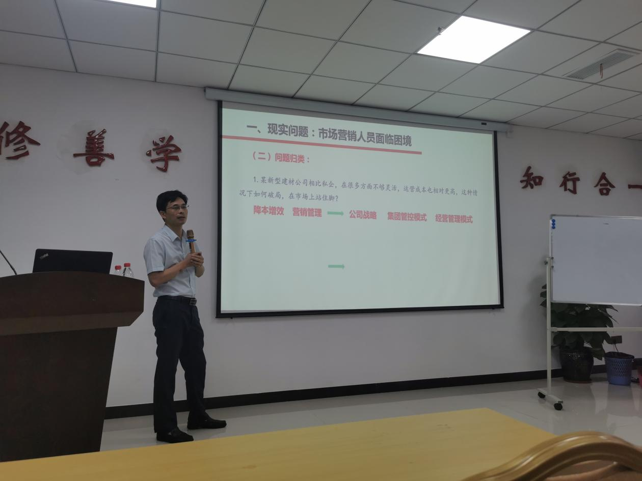 在培訓(xùn)會上,鄒國良教授闡述了市場營銷人員面臨的困境、全面梳理了目前公司發(fā)展可能存在的問題,從業(yè)績持續(xù)改善及市場營銷方面作為突破口,提出了破解問題的工作方法及應(yīng)用。課堂上,為活躍學(xué)習(xí)氣氛,鄒國良教授與學(xué)員進行互動探討,并對提出的問題進行了細(xì)致解答。