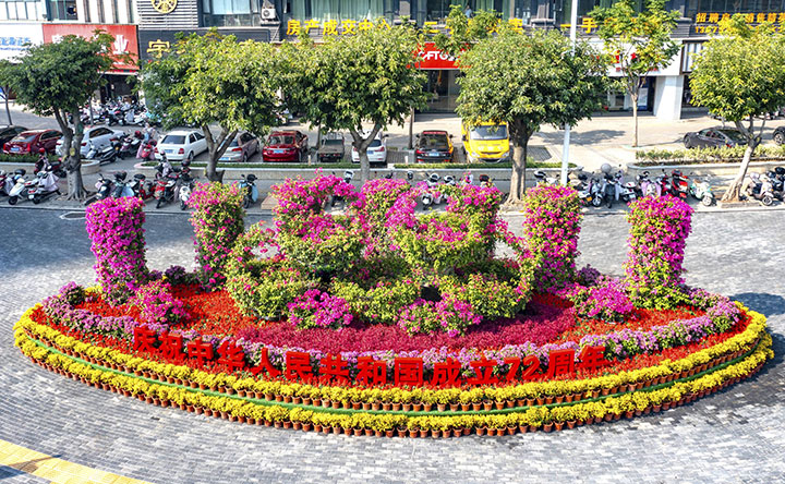 贛州城投集團(tuán)的工作人員介紹,“含蕊紅三葉,臨風(fēng)艷一城”三角梅以絕色天姿代表著贛南人民熱情、朝氣、堅(jiān)韌不拔和頑強(qiáng)奮進(jìn)的精神,滿城齊放展現(xiàn)對(duì)祖國(guó)的美好祝愿。