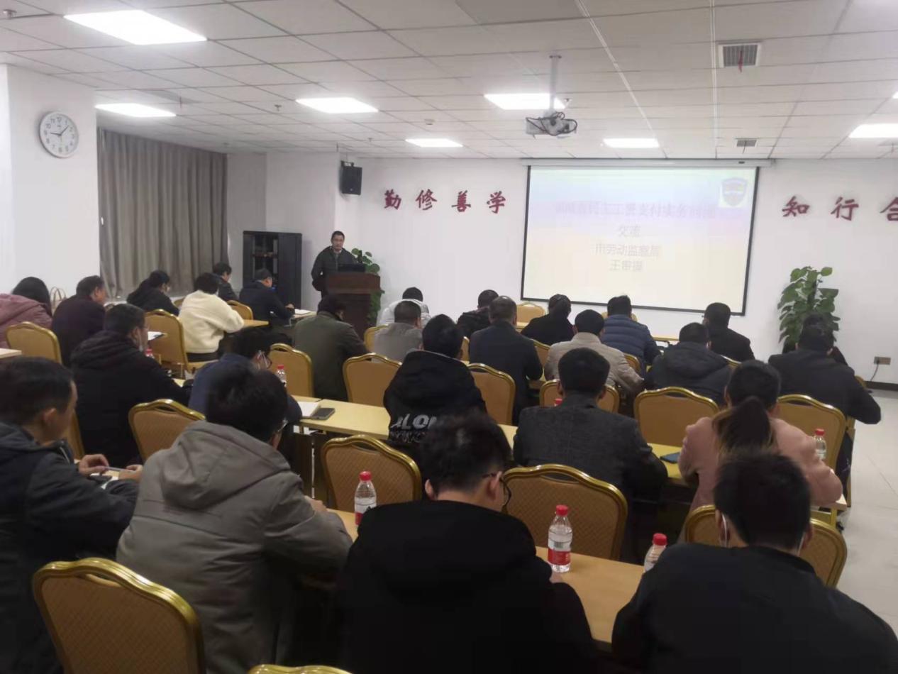為進(jìn)一步加強(qiáng)贛州城投集團(tuán)在建工程項(xiàng)目農(nóng)民工工資支付規(guī)范化管理,提升項(xiàng)目建設(shè)管理人員管理水平,切實(shí)做好農(nóng)民工工資支付保障工作,近日,贛州城投集團(tuán)黨委黨校舉辦保障農(nóng)民工工資支付專(zhuān)題培訓(xùn)。根據(jù)集團(tuán)黨委黨校第二學(xué)期教學(xué)計(jì)劃安排,此次培訓(xùn)由工程管理公司承辦,贛州市勞動(dòng)監(jiān)察局監(jiān)察一科科長(zhǎng)王貴福受邀前來(lái)集團(tuán)授課,集團(tuán)各在建項(xiàng)目負(fù)責(zé)人、勞資監(jiān)管員、子公司共50余人參加培訓(xùn)。