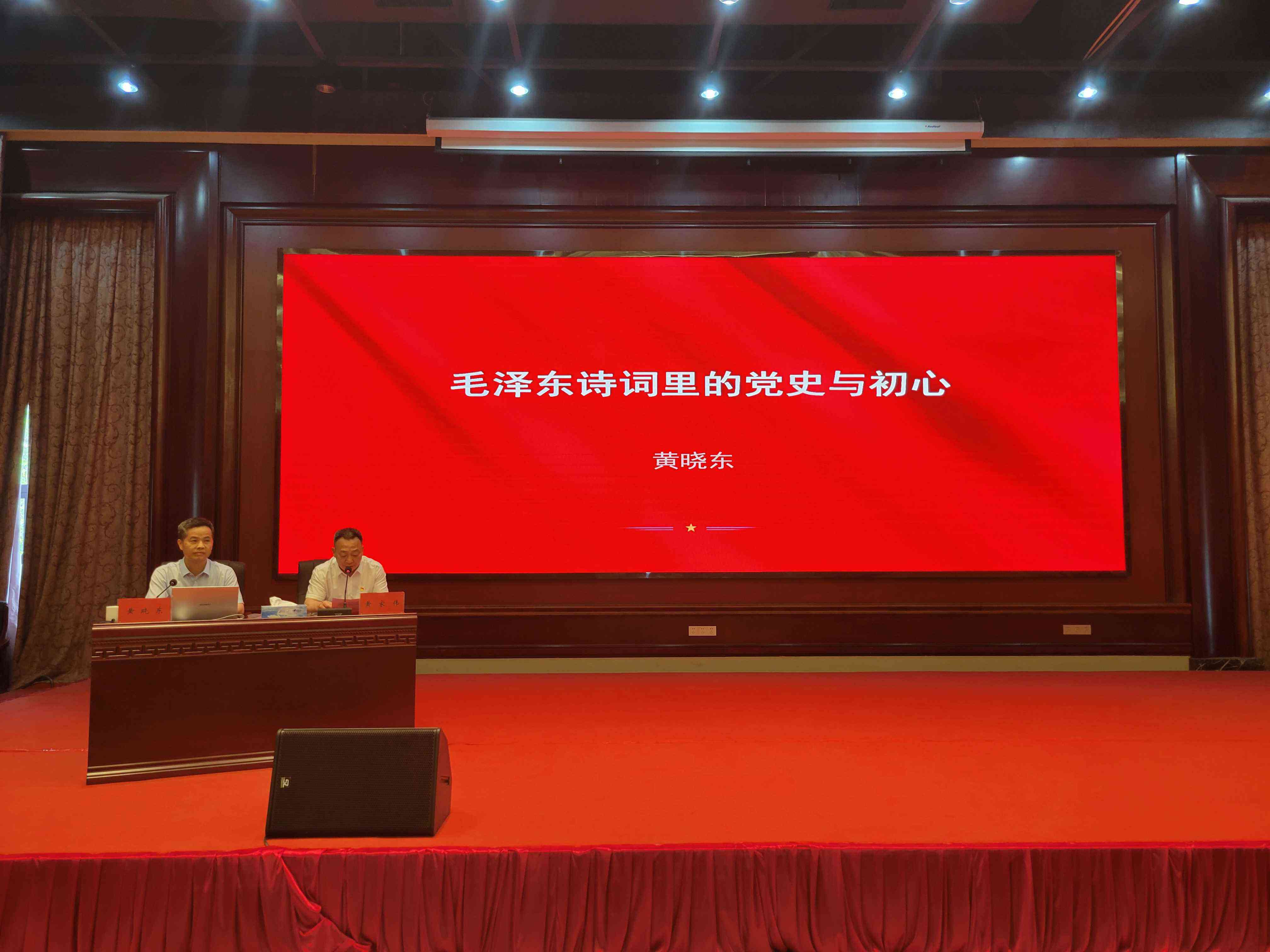 黃曉東同志以《毛澤東詩詞里的黨史與初心》為主題,以毛澤東同志的革命道路為主線,品讀毛澤東同志不同時(shí)期的詩詞,從離愁別恨里的黨史與初心等10個(gè)方面,回溯偉人立志報(bào)國救亡、書生意氣的青年時(shí)代、艱苦卓絕的革命崢嶸歲月、如火如荼的社會主義革命和建設(shè)歷程,彰顯偉人獨(dú)具魅力的個(gè)性情懷和豪邁氣概,闡述了共產(chǎn)黨人的初心與使命。