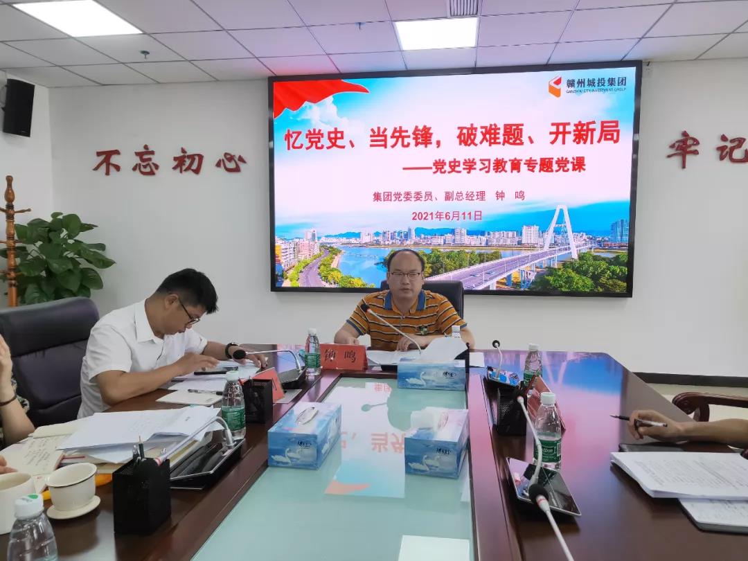 根據(jù)贛州城投集團黨委的統(tǒng)一部署,日前,集團黨委委員、副總經(jīng)理鐘鳴講授黨史學(xué)習(xí)教育專題黨課,生態(tài)投資公司黨支部、土地置業(yè)公司黨支部、振興實業(yè)公司黨支部全體黨員及入黨積極分子參加。