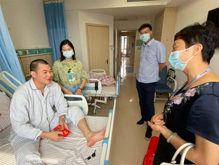前不久,贛州城投集團新型建材公司黨支部在摸排“我為群眾辦實事”線索過程中,得知一名職工丈夫生病住院做手術(shù),病情讓她很是牽掛。8月12日上午,新型建材公司黨支部組成慰問小組,來到贛州市人民醫(yī)院,看望該名職工及其丈夫,為他們送去了黨支部的關心和慰問。